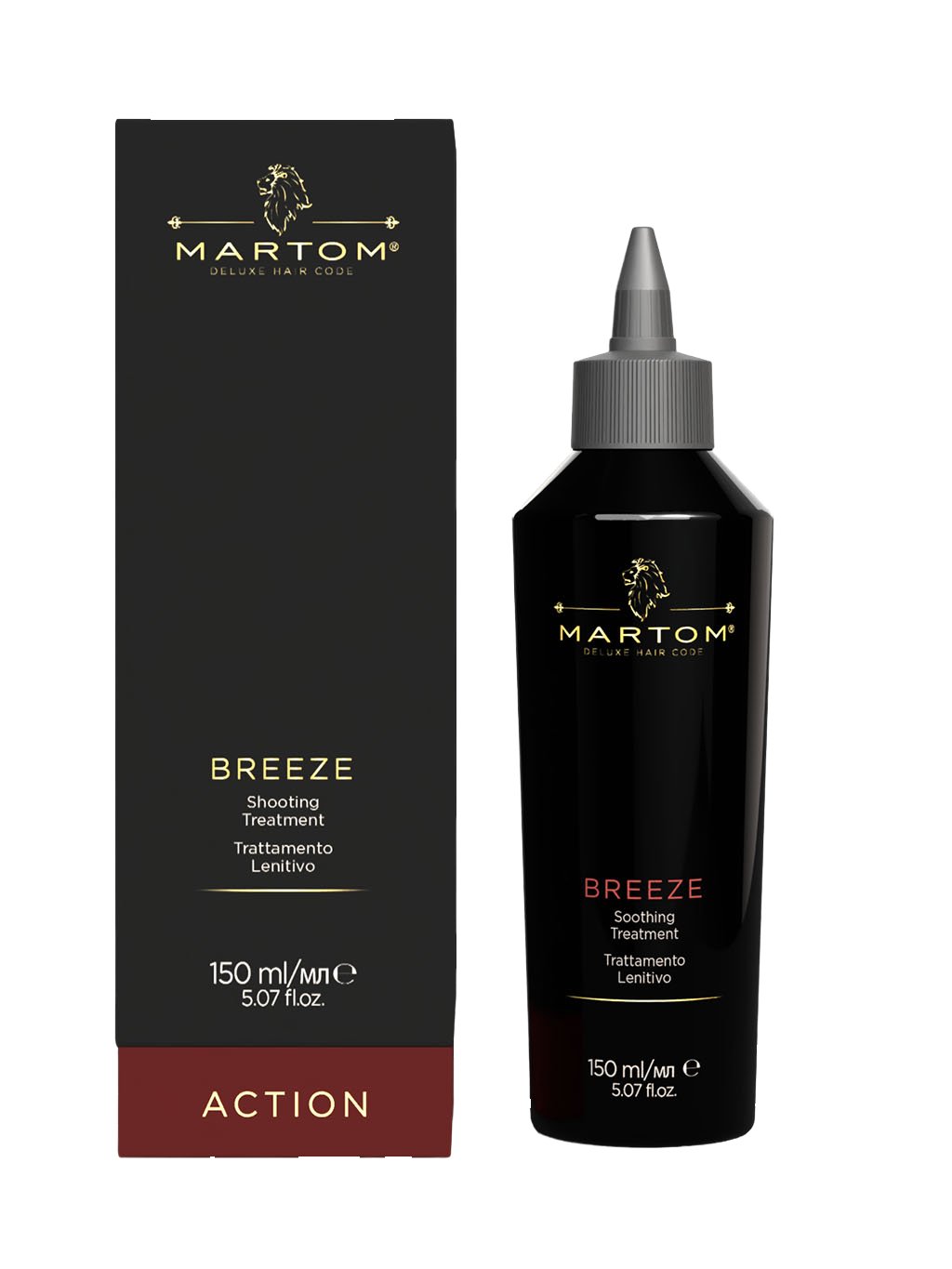 Vlasy rozdělte pomocí vlasového aplikátoru a naneste Breeze na pokožku hlavy: Před provedením odborné péče na citlivé pokožce nebo pokožce zarudlé bez masáže. Před úpravou vlasů bez oplachování na základě protokolu dotykové terapie. Naneste Breeze na vlhkou pokožku před holením a aplikací holicí pěny.