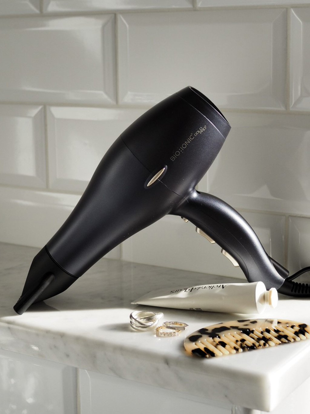 Nový a vylepšený Gold Pro fén se vyznačuje ergonomickým designem, který zajišťuje pohodlí při používání, a je tak nezbytným nástrojem pro každodenní úpravu vlasů. Tento lehký profesionální fén využívá sílu Bio Ionic Moisturizing Heat™ k vytvoření krásných, hladkých účesů bez krepatění a zároveň chrání zdraví vašich vlasů.