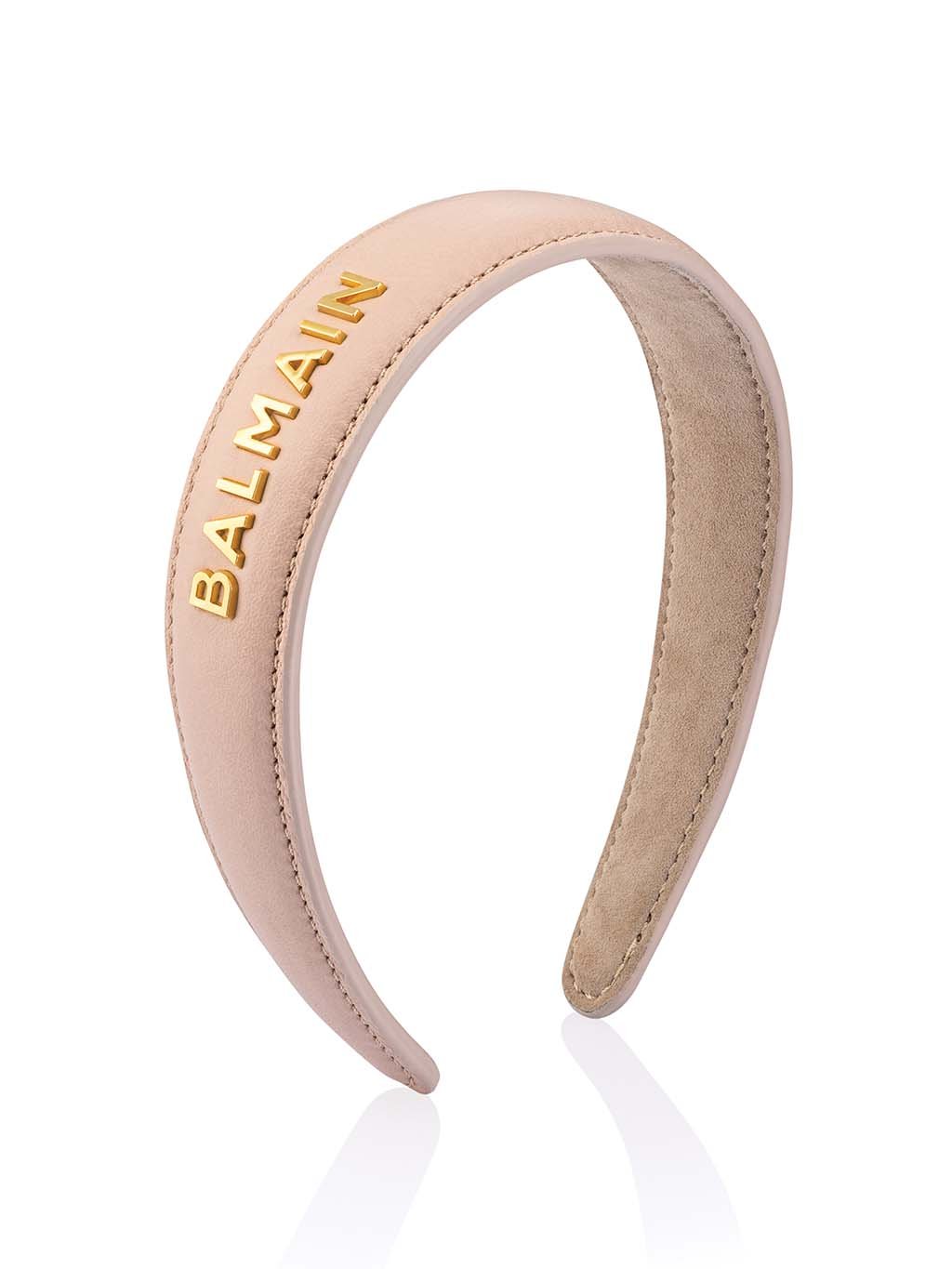 Výjimečná čelenka ručně vyráběná z napa kůže s jemným nubukovým vnitřkem pro maximální stabilitu ve vlasech. Přední 18K pozlacené logo „Balmain“ působí jako luxusní dekorativní prvek.