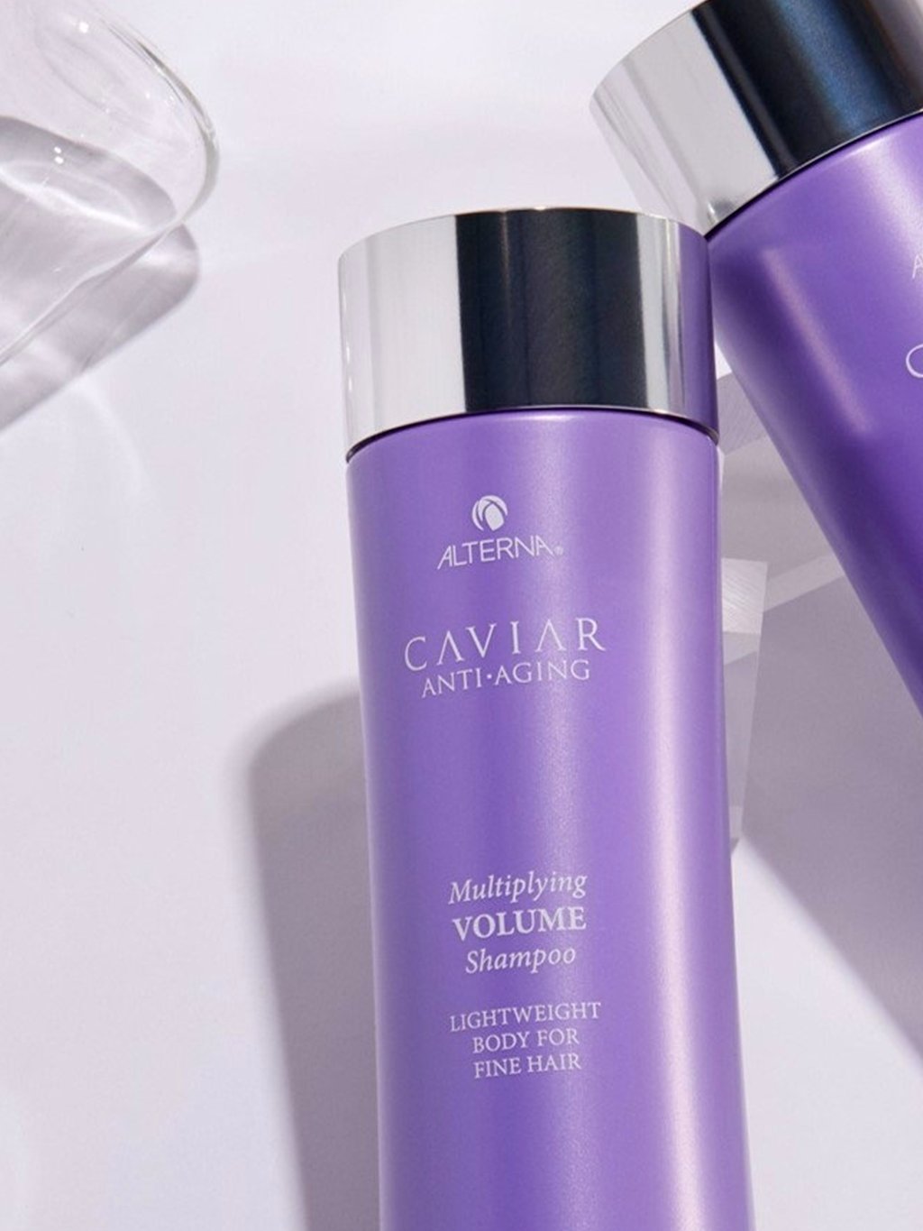 Vykouzlete si ve vlasech dechberoucí objem od kořínků až ke konečkům! Jemný šampon zajišťuje šetrné čištění, pomáhá vlasům udržet si hydrataci a dodává jim plný a hustší vzhled. Obsahuje luxusní kaviárový extrakt bohatý na omega mastné kyseliny, vitamíny a minerály, které vlasy chrání před přirozenými, vnějšími i chemickými faktory způsobujícími jejich stárnutí. Komplex Marine Plumping Complex pak pomáhá jemným a zplihlým vlasům získat zpět plnost a objem bez zatížení a zároveň si zachovat lesk a hydrataci. Klinické studie prokázaly, že při pravidelném používání spolu s kondicionérem Caviar Multiplying Volume Conditioner a stylingovou mlhou Caviar Multiplying Volume Styling Mist šampon okamžitě dodává plnost a objem.