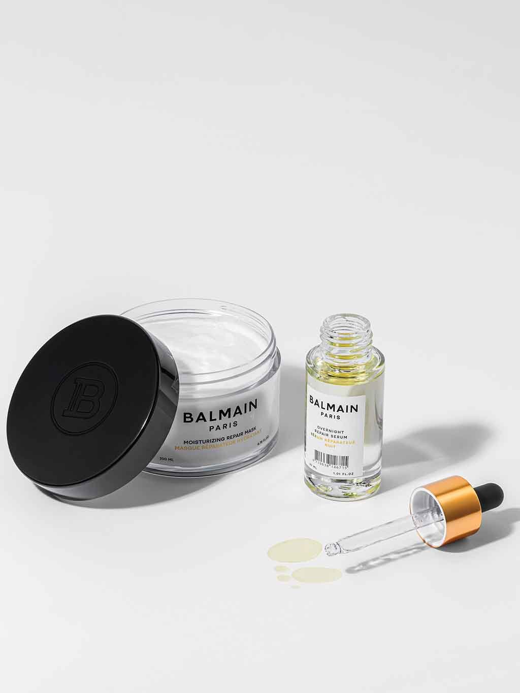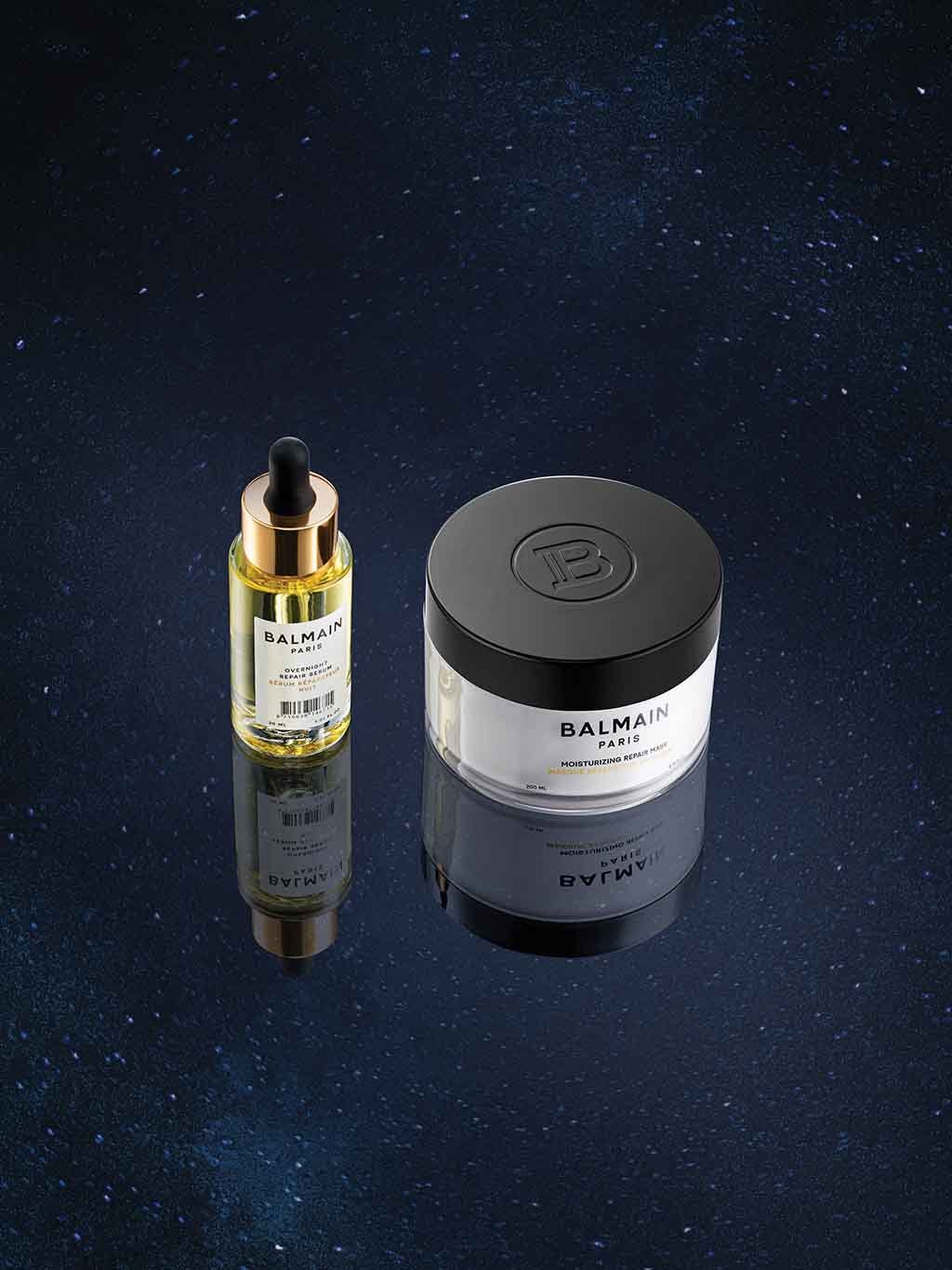 Noční sada péče o vlasy z limitované edice Muse de la Fête představuje exkluzivní péči profesionální kvality určenou k revitalizaci vlasů. Všestranné složení umožňuje smíchání séra s maskou k dosažení intenzivnějšího vyživení, hedvábně lesklých, zářivých a hloubkově obnovených vlasů.