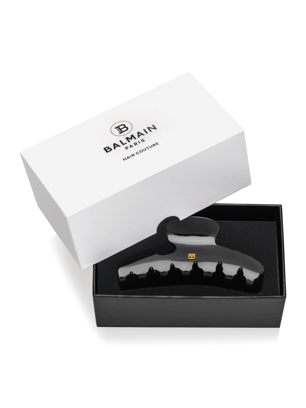 Vysoce kvalitní, ručně vyrobený vlasový klip z odolného acetátu celulózy, zdobený typickým znakem "B" vyvedeným z 14karátového plátkového zlata. Velice pevný, avšak pružný materiál je hypoalergenní a šetrný vůči vlasům i pokožce hlavy.