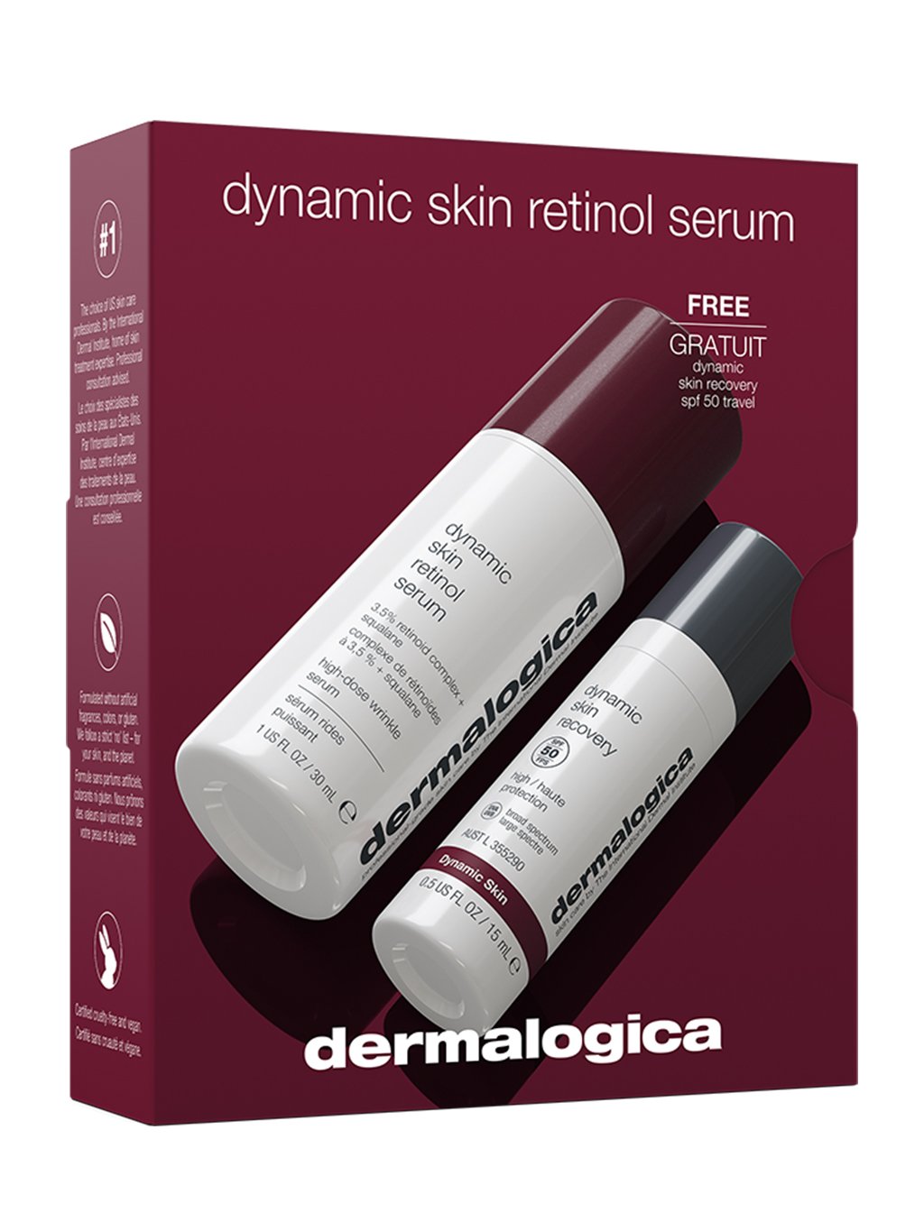 Viacúčelový denný hydratačný krém so širokospektrálnou ochranou poskytuje hydratáciu, vyhladzuje pleť a chráni pred UVA a UVB lúčmi. Dynamic Skin Retinol Serum obsahuje 3,5% retinoidný komplex, ktorý cielenie pôsobí na vrásky, zlepšuje textúru pleti, minimalizuje viditeľnosť pórov a zjednocuje tón pleti.