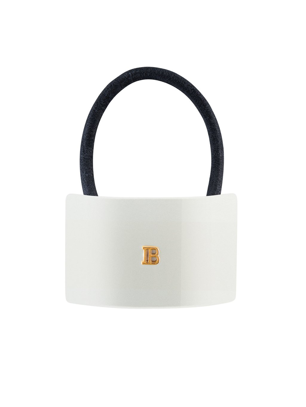 Vysoko kvalitná, ručne vyrobená vlasová gumička z odolného acetátu celulózy, zdobená typickým znakom "B" vyvedeným z 14-karátového plátkového zlata. Veľmi pevný, avšak pružný materiál je hypoalergénny a šetrný voči vlasom i pokožke hlavy.