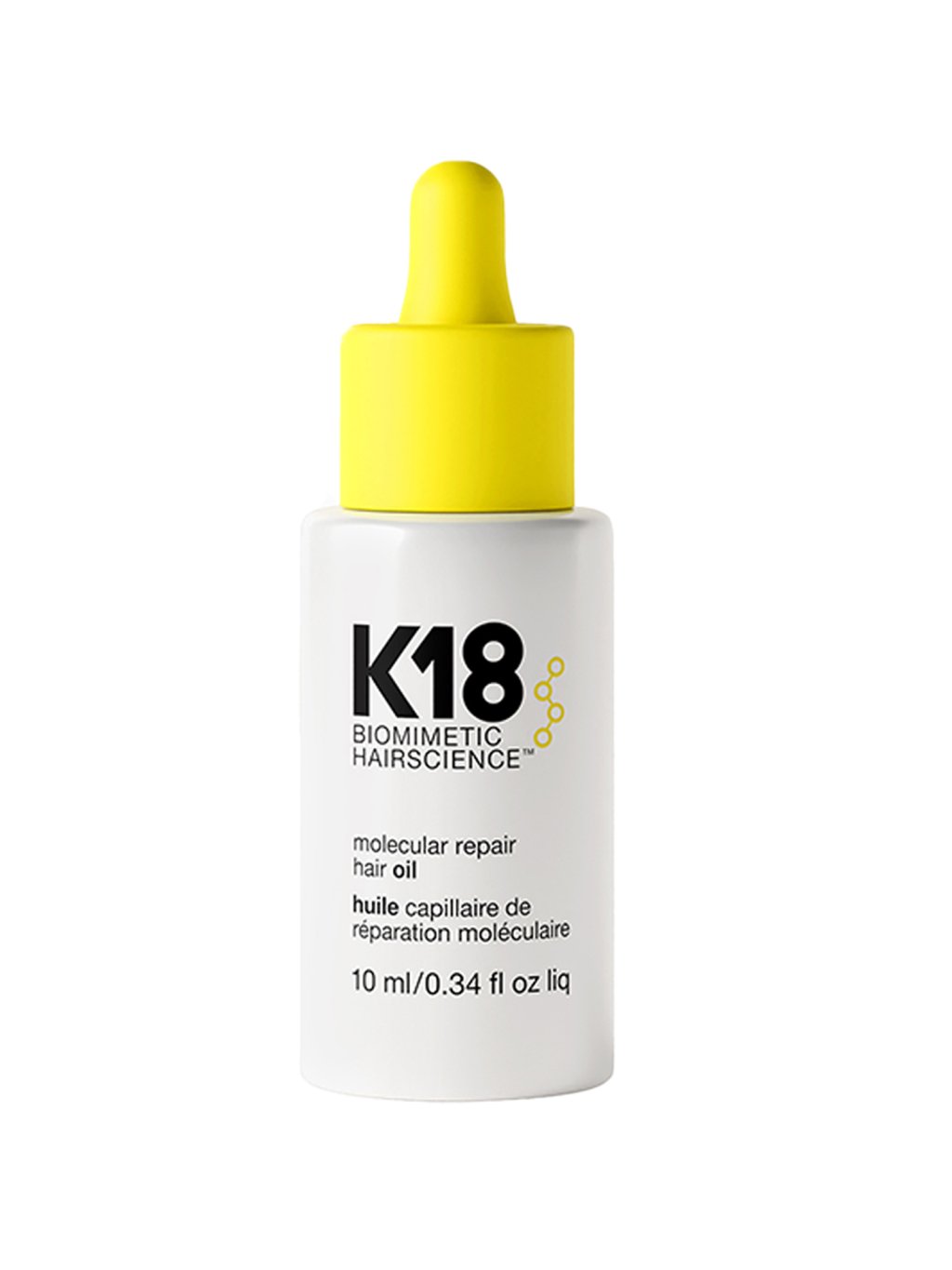 Pro tip: Ak používate tiež K18 Molecular Repair Leave-in masku, naneste najprv na čisté, vlhké vlasy masku a počkáte 4 minúty. Následne aplikujte olej a pre maximálny výsledok opäť nechajte 4 minúty pôsobiť.
