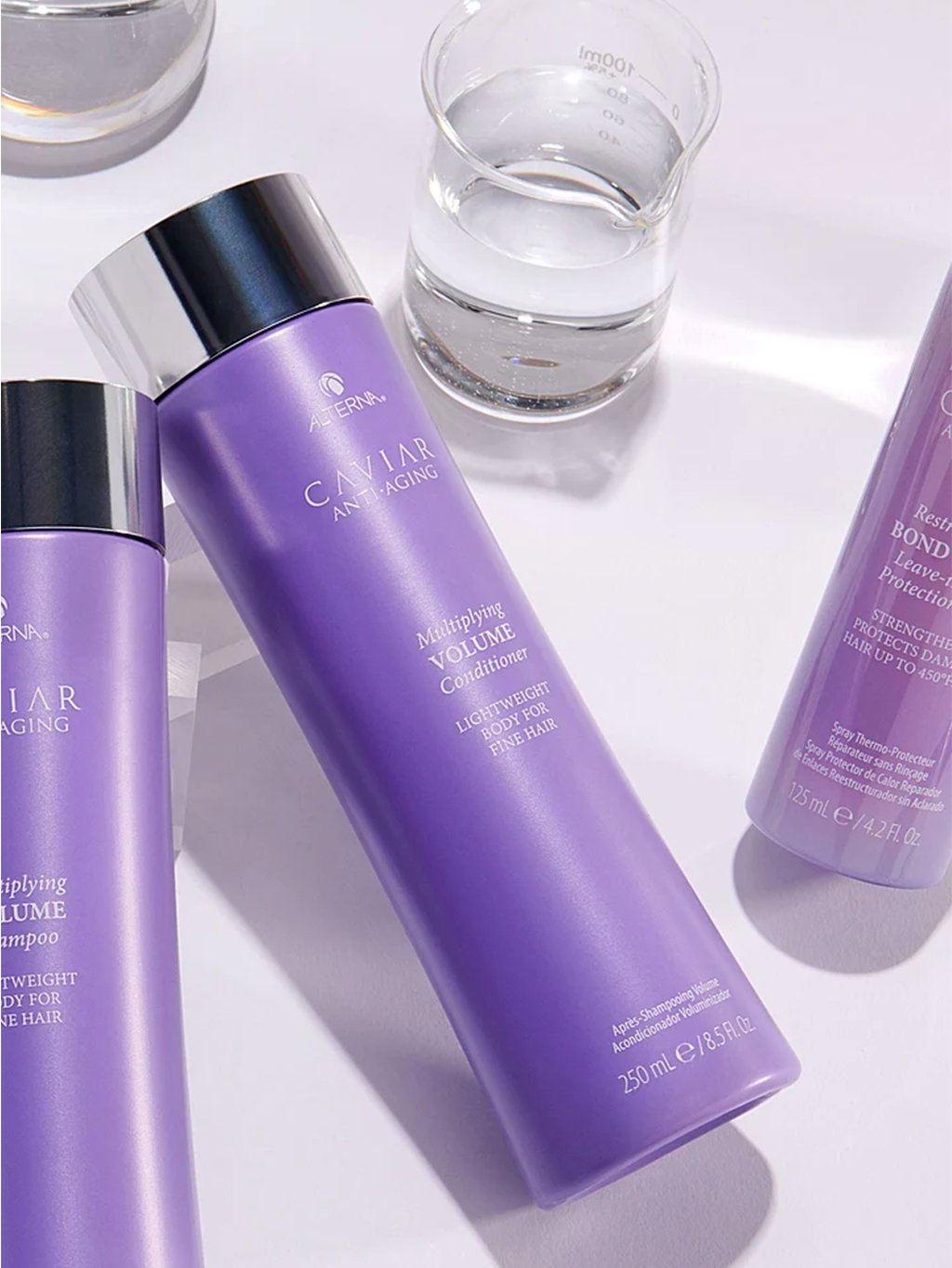 Caviar Anti-Aging Multiplying Volume conditioner : Water/Aqua/Eau, Cetearyl Alcohol, Stearamidopropyl Dimethylamine, Glycerin, Dimethicone, Behentrimonium Methosulfate, Cetrimonium Chloride, Phospholipids, Caviar Extract, Alaria Esculenta Extract, Helianthus Annuus (Sunflower) Seed Oil, Glycine Soja (Soybean) Oil, Macrocystis Pyrifera (Kelp) Extract, Linum Usitatissimum (Linseed) Seed Oil, Butyrospermum Parkii (Shea) Butter, Keratin, Hydrolyzed Keratin, Biotin, Saccharomyces/Magnesium Ferment, Saccharomyces/Copper Ferment, Saccharomyces/Silicon Ferment, Saccharomyces/Zinc Ferment, Saccharomyces/Iron Ferment, Hydrolyzed Vegetable Protein PG-Propyl Silanetriol, Superoxide Dismutase, Polysilicone-15, Panthenol, Tocopherol, Tocopheryl Acetate, Ethylhexylglycerin, Ascorbic Acid, Butylene Glycol, Polyimide-1, Hydroxyethylcellulose, Guar Hydroxypropyltrimonium Chloride, Disodium EDTA, Citric Acid, Phenoxyethanol, Sodium Benzoate, Potassium Sorbate, Fragrance (Parfum). (10-16-34985).