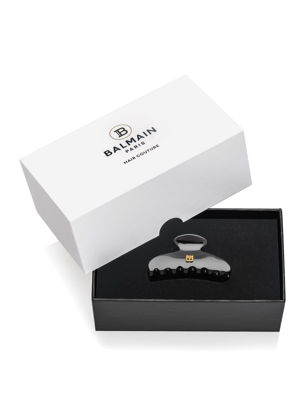 Vysoko kvalitný, ručne vyrobený vlasový klip z odolného acetátu celulózy, zdobený typickým znakom "B" vyvedeným z 14karátového plátkového zlata. Veľmi pevný, avšak pružný materiál je hypoalergénny a šetrný voči vlasom i pokožke hlavy.