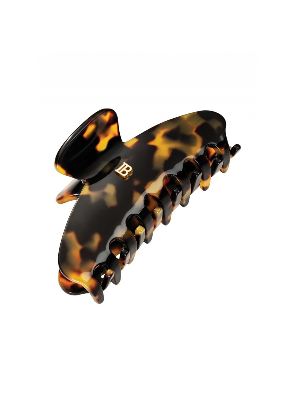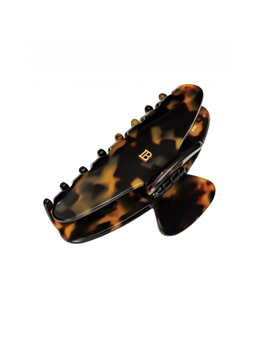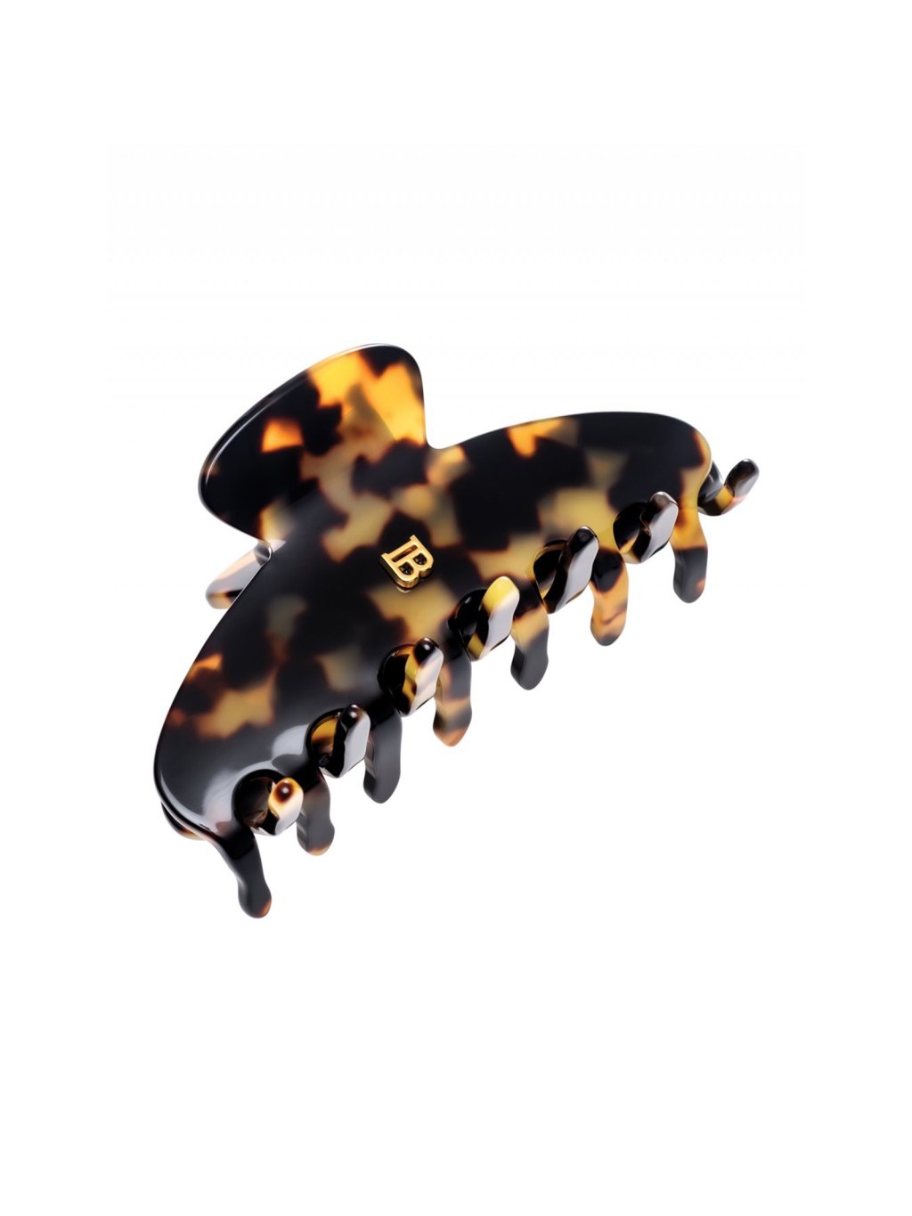 Vysoko kvalitný, ručne vyrobený vlasový klip z odolného acetátu celulózy, zdobený typickým znakom "B" vyvedeným z 14karátového plátkového zlata. Veľmi pevný, avšak pružný materiál je hypoalergénny a šetrný voči vlasom i pokožke hlavy.