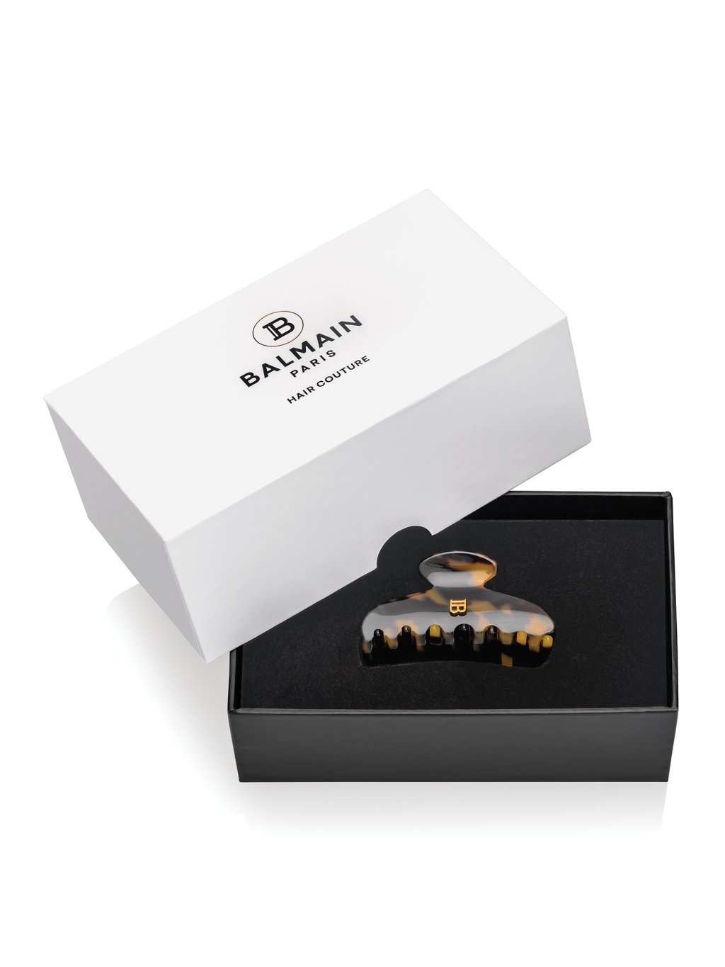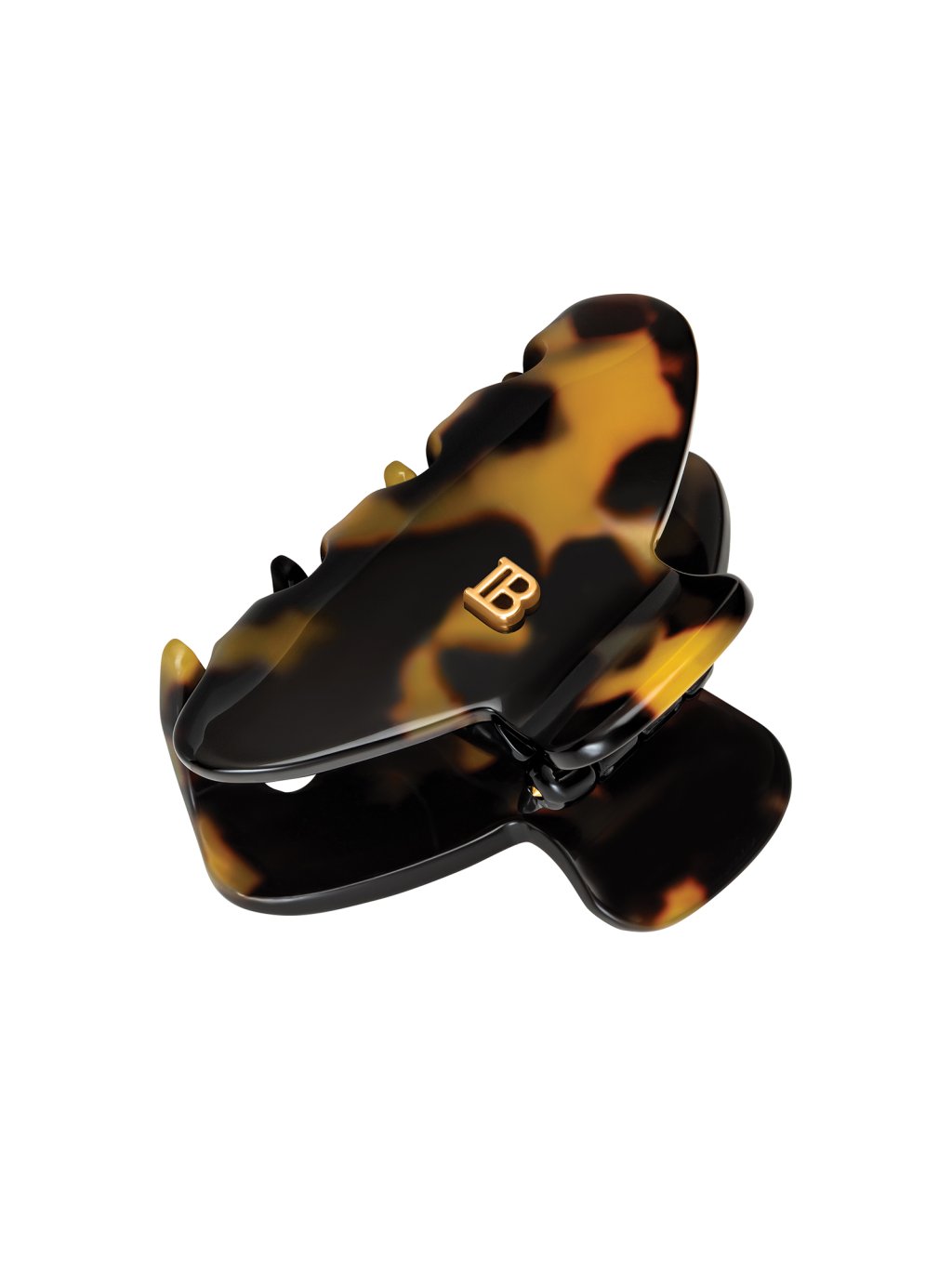 Vysoko kvalitný, ručne vyrobený vlasový klip z odolného acetátu celulózy, zdobený typickým znakom "B" vyvedeným z 14karátového plátkového zlata. Veľmi pevný, avšak pružný materiál je hypoalergénny a šetrný voči vlasom i pokožke hlavy.