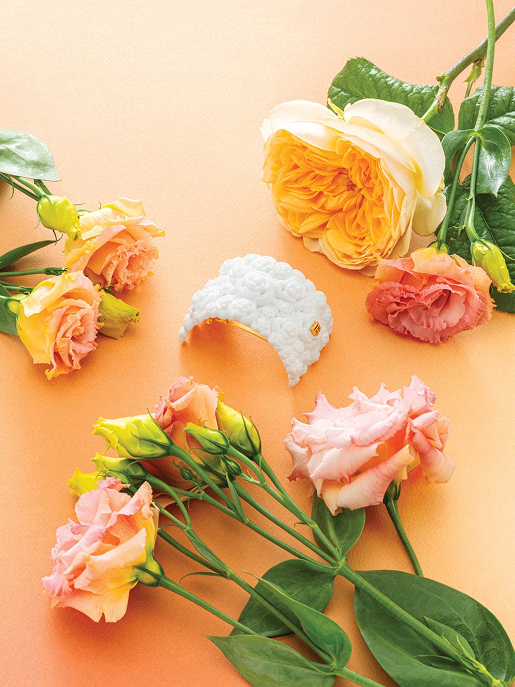Limitovaná kolekcia Muse de Printemps sponka na cop. Jej kostra, vyrobená z najkvalitnejšej mosadze a živice, je ľahká a odolná zároveň, čo zaručuje dlhodobý komfort.