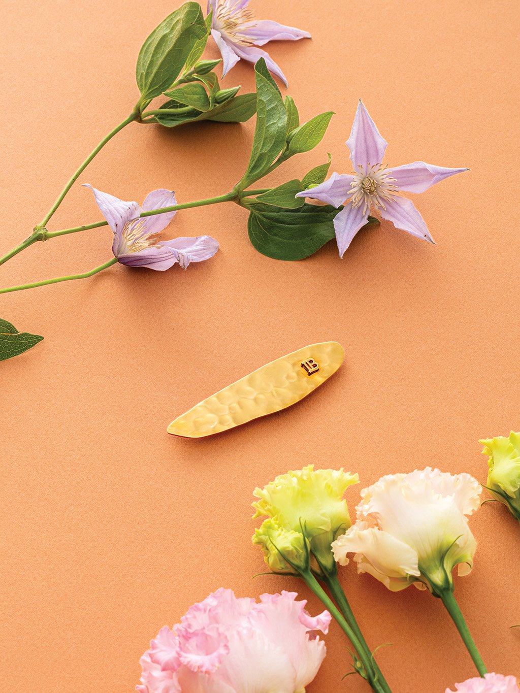 Limitovaná edícia Muse de Printemps Slide. Jarná pinetka v tvare lístka zachytáva krásu prírody a zároveň vyniká rafinovaným dizajnom s detailmi z 18-karátového zlata. Tento doplnok je vyrobený z prvotriednej mosadze.