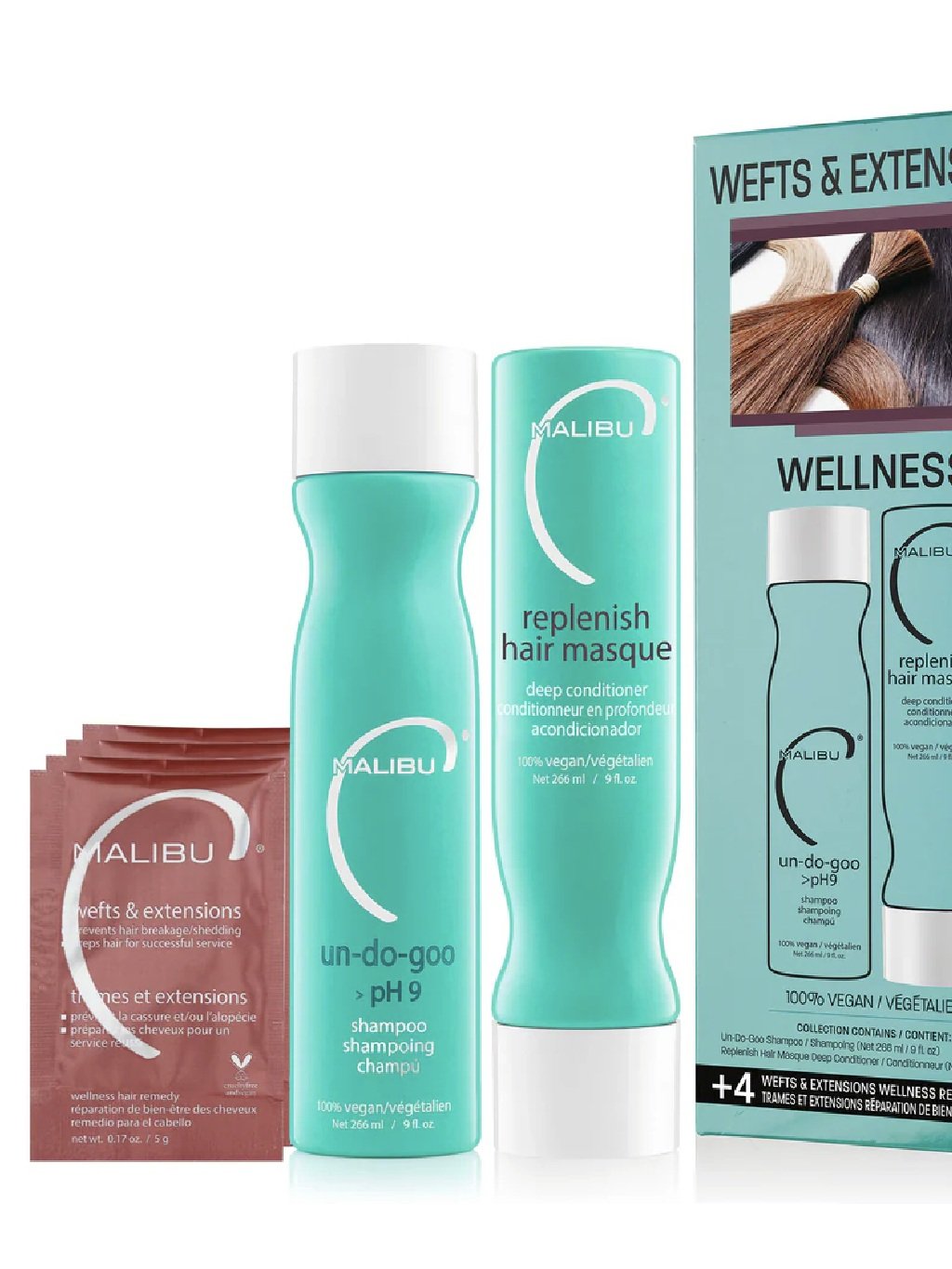 Vďaka tejto sade získajú predĺžené vlasy hebkosť, lesk a dlhšiu životnosť. Táto sada jemne, ale účinne odstraňuje zvyšky stylingu, minerály a nečistoty, ktoré sa ľahko usadzujú vo vlasoch a na spojoch predĺžení. Pokročilá technológia šetrného čistenia chráni vlasy pred zauzlením, lámavosťou a stratou lesku. Súčasťou sady je čistiaci šampón Un-Do-Goo, Replenish Hair Masque a wellness remedy vrecká, ktoré odstraňujú nánosy minerálov a stylingu z predĺžených vlasov a predlžujú ich životnosť aj prirodzený vzhľad.