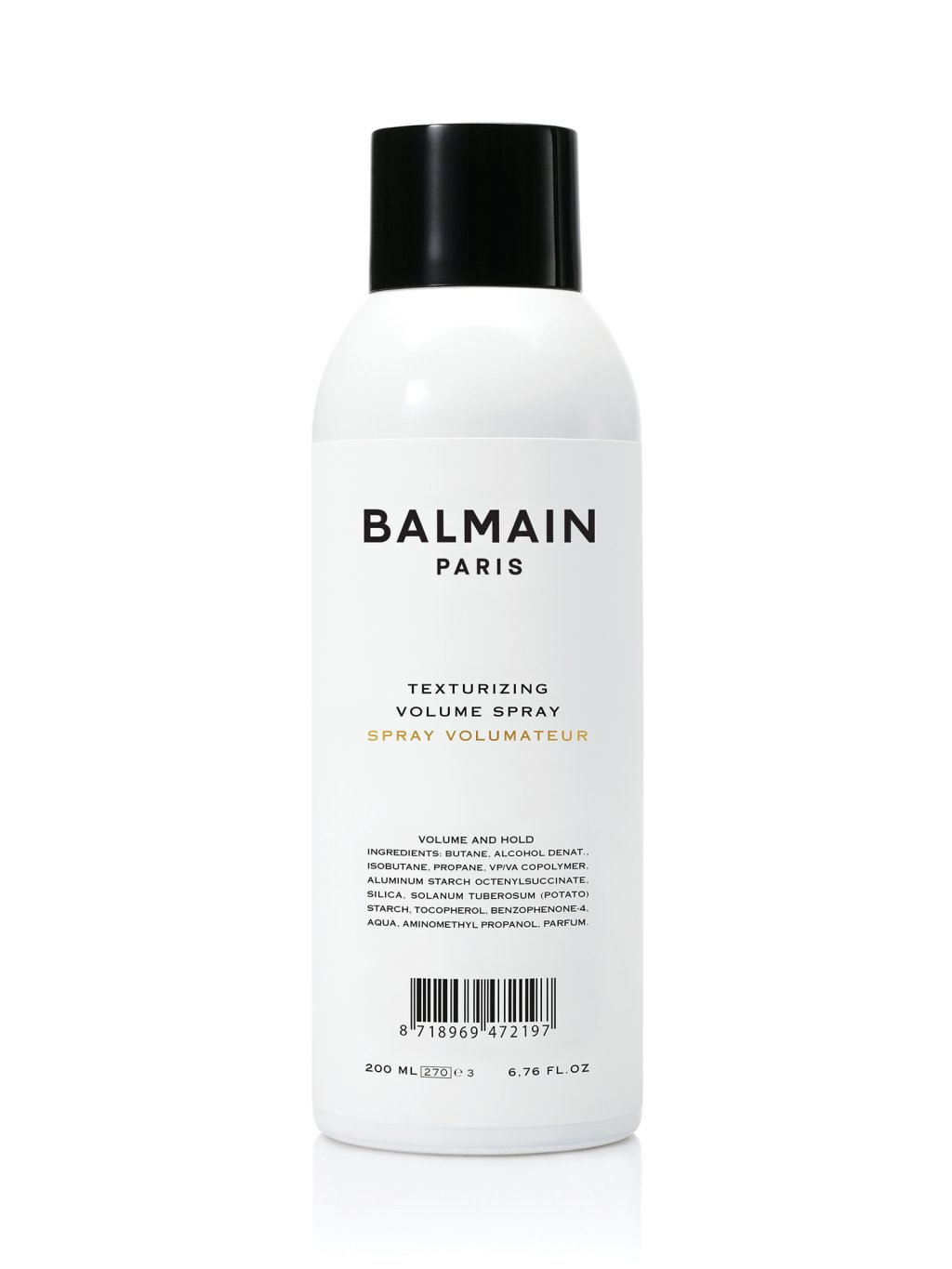 Butane, Alcohol Denat., Isobutane, Propane, VP/VA Copolymer, Aluminum Starch Octenylsuccinate, Silica, Solanum Tuberosum (Potato)Starch, Cocotrimonium Methosulfate, Aqua, Tocopherol, Benzophenone-4, Parfum.
