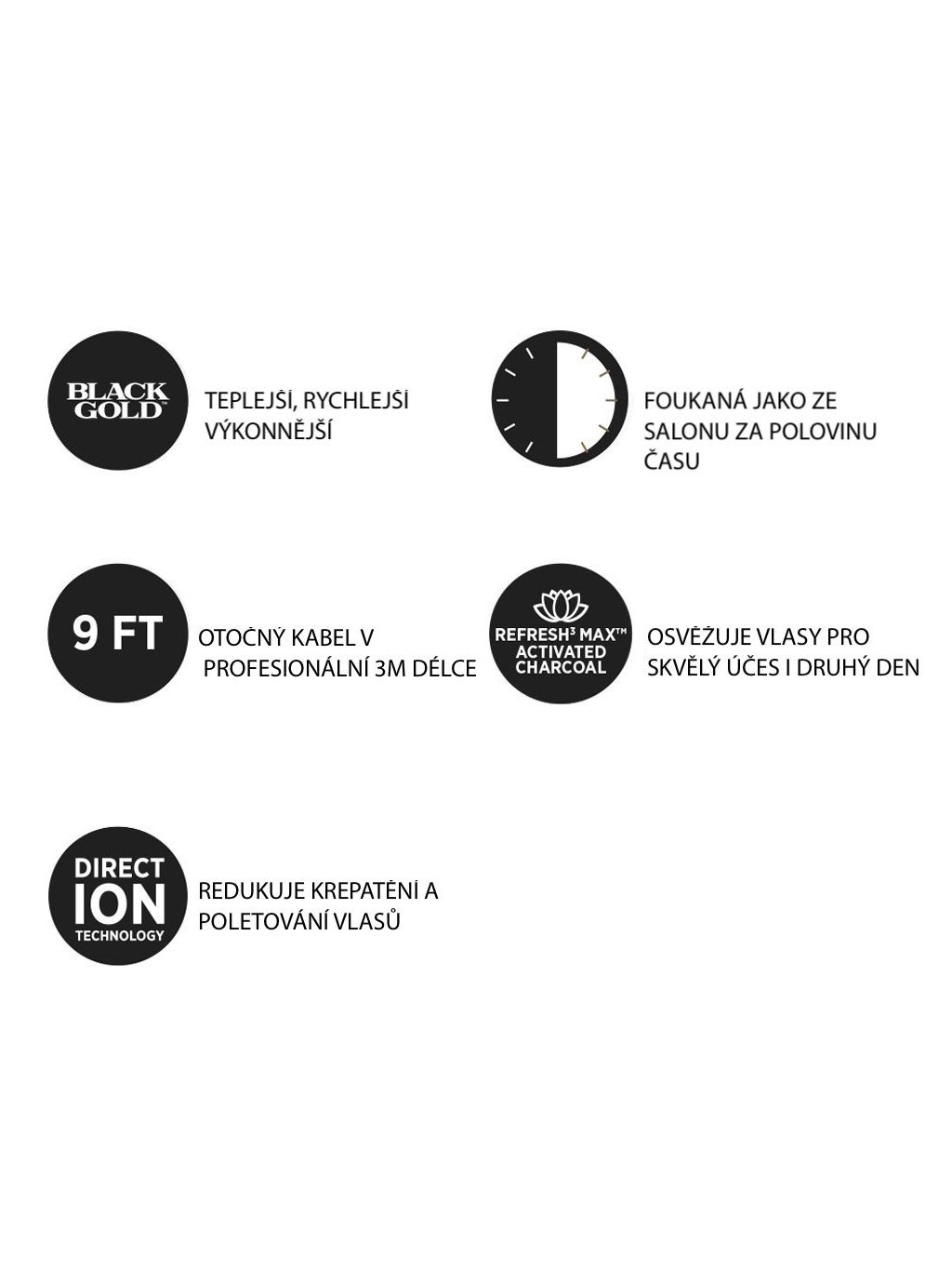 3 teplotní/2 rychlostní stupně, ergonomický design, chladná špička, 3 metry dlouhý otočný kabel
